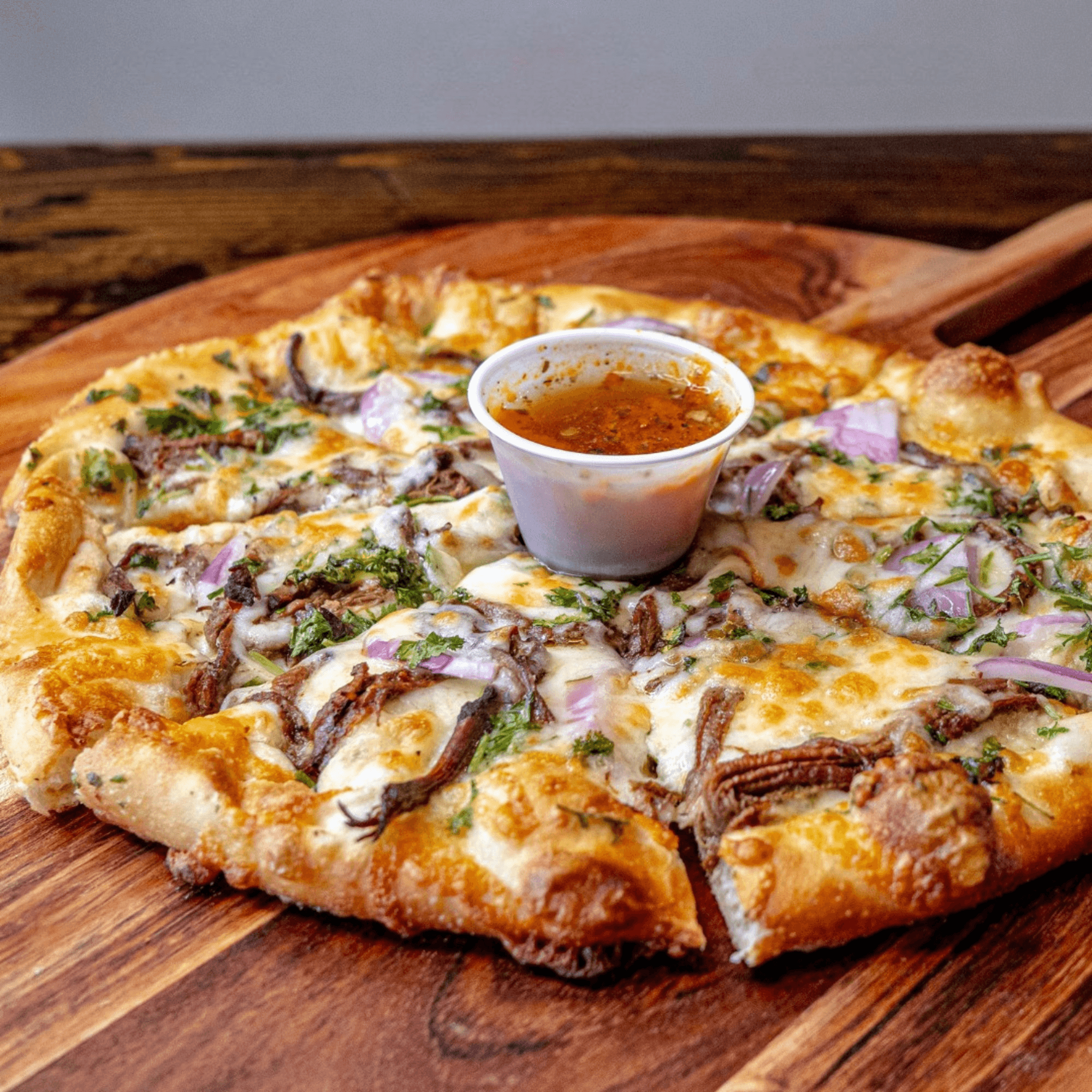 Delicious pizza! I love wood fired pizza and this place did not disappoint! We got a cheese for the kids, and crab pizza for the adults. It was all really good, and we will definitely be back for more pizza and to try the wings. We got the strawberry dessert pizza to go.